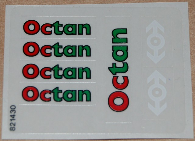 Brick, Round 2 x 2 with Axle Hole with Red and Green 'Octan' Pattern |