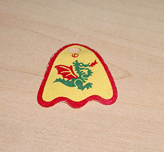 Minifigure, Shield Oval with Green and Red Dragon on Yellow Background Pattern |