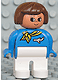 Duplo Figure, Flight Attendant - Female, White Legs, Blue Top with Scarf with Stripe and Jet Airplane Pin Pattern, Brown Hair, Nougat Head with Grin and Turned Up Nose (75515) |