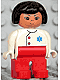 Duplo Figure - Female, Adult Woman, Red Legs, Yellow Top with Buttons and Wrench in Pocket Pattern, Black Hair, Dark Orange Head (75510) |