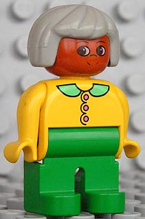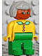 Duplo Figure - Female, Adult Woman, Green Legs, Yellow Top with Collar and Buttons Pattern, Light Gray Hair, Dark Orange Head (75512) |