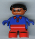 Duplo Figure - Male, Child Boy, Red Legs, Blue Top with Collar and Buttons Pattern, Black Hair, Dark Orange Head (75513) |