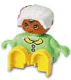 Duplo Figure - Female, Child Baby, Yellow Legs, Medium Green Top with Collar and Buttons Pattern, White Bonnet, Dark Orange Head (75514) |
