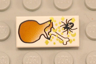 Tile 1 x 2 with HP Spider, Bone, and Bag Pattern |