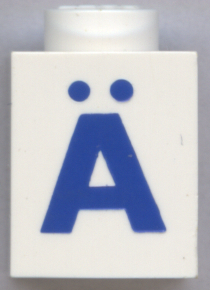 Brick 1 x 1 with Blue Capital Letter A with Ring (Å) Pattern (Bold Font) |