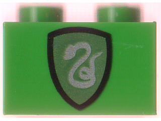 Brick 1 x 2 with HP Slytherin Shield Pattern |