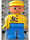 Duplo Figure, Male, Blue Legs, Yellow Top with Wrench in Pocket and Red Buttons, Yellow Cap, Grin |