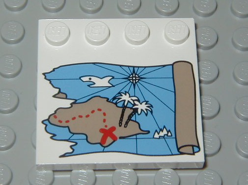 Tile, Modified 4 x 4 with Studs on Edge with Ocean Pirate Treasure Map Right-Half Pattern |