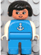 Duplo Figure, Female, Blue Legs, Blue Top with White Anchor, Black Hair |