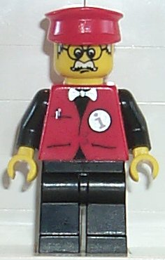 Dark Blue Suit with Train Logo, Dark Blue Legs, Dark Red Hat, Rectangular Glasses - Passenger Train Engineer |