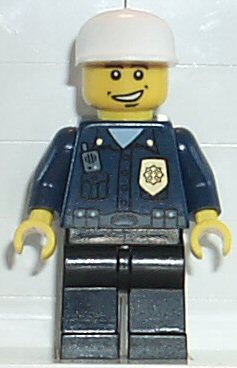 Police - World City Patrolman, Dark Blue Shirt with Badge and Radio, Black Legs, White Cap |