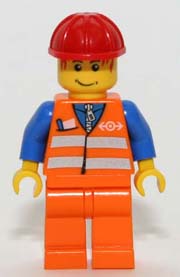 trn129a Orange Vest with Safety Stripes - Orange Legs, Red Construction Helmet, Brown Moustache, Dark Bluish Gray Hands 1 (Not Applicable) Non Non Non