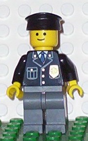 Police - City Suit with Blue Tie and Badge, Dark Bluish Gray Legs, Black Cap |