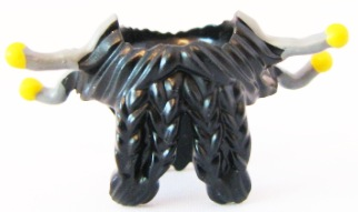 Minifigure Beard, Braided with Hair in Back and Four Gray and Yellow Ends Pattern |