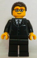 Minifigure, Head Glasses Rectangular, Brown Thin Eyebrows, Smile Pattern |