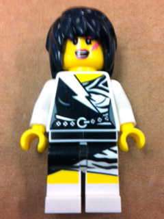 Minifigure, Head Female Black Thin Eyebrows, Eyelashes, Dark Pink Eye Shadow, Lips, and Lightning Bolt, Open Mouth with Teeth Parted and Red Tongue Pattern |