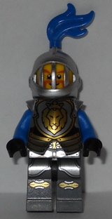 Minifigure, Shield Triangular Short with Black and Gold Lion Head with Crown on Blue and White Background Pattern |