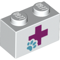 Brick 1 x 2 with Magenta Cross and Animal Paw Pattern |