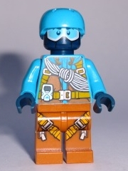 3626pb2139 Minifigure, Head Female Dark Blue Eyebrows, Eyelashes, and Eyes, Black Ski Goggles with Medium Azure Lens, Nougat Lips, Grin Pattern 1 Yellow Non Non Non
