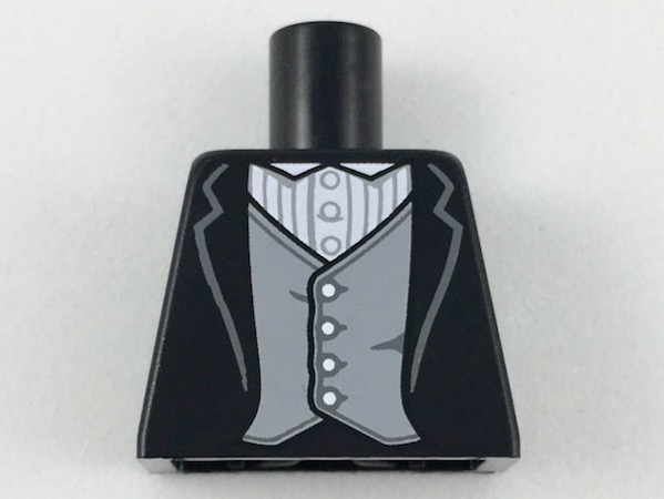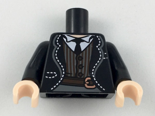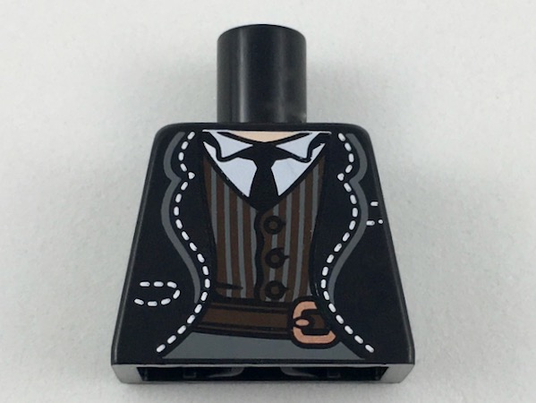 Torso Jacket with White Stitching, White Shirt, Black Tie, Dark Brown Striped Vest and Belt Pattern / Black Arms / Light Nougat Hands |