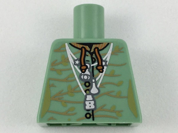 Torso Jacket with Dark Brown Trim and Bow Tie, Dark Orange Vest, Bright Green Bowtruckle Pattern |