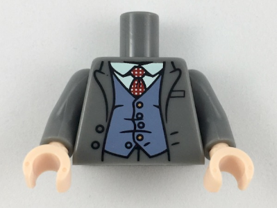Torso Jacket, White Shirt, Red Tie with White Spots, Sand Blue Vest Pattern / Dark Bluish Gray Arms / Light Nougat Hands |