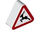 Duplo, Brick 1 x 3 x 2 Triangle Road Sign with Red Border and Black Leaping Deer Pattern |