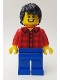 Dragon Boat Race Spectator - Male, Red Plaid Flannel Shirt, Blue Legs, Black Tousled Hair |