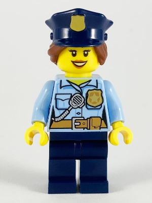 Police - City Officer Female, Bright Light Blue Shirt with Badge and Radio, Dark Blue Legs, Dark Blue Police Hat |