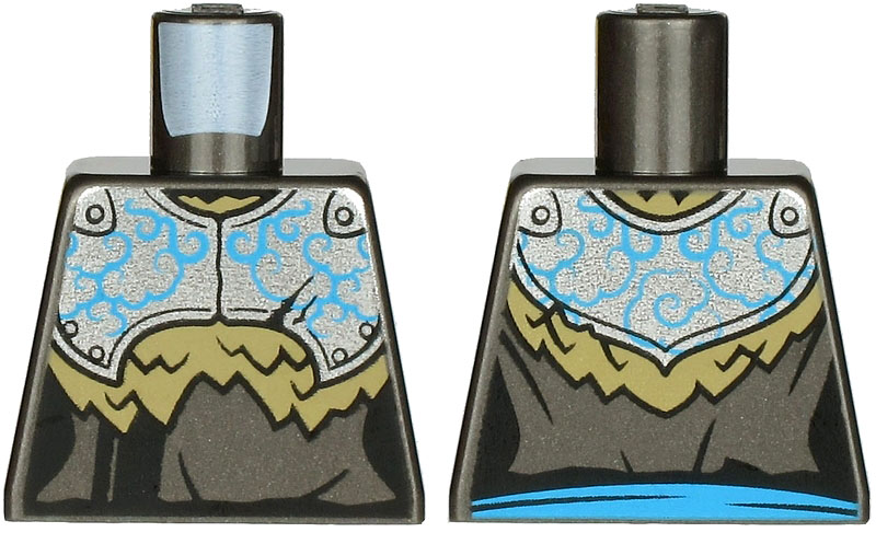 Minifigure, Shield Circular / Round Convex Face with Black and Silver Ninjago Dragon Head Pattern |