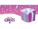 Clikits Paper, Gift Tag with Hole with Light Blue Present with Magenta Ribbon, Snowflakes, and Logo Pattern |