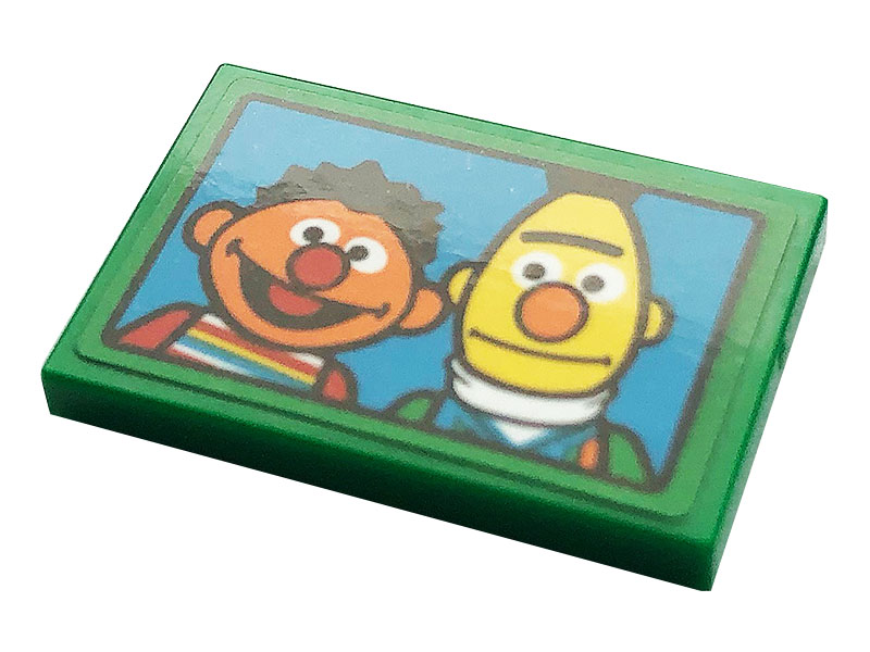 Tile 2 x 2 with Red and Green Stripes and Dark Green 'PIZZA' Pattern (Pizza Box) |