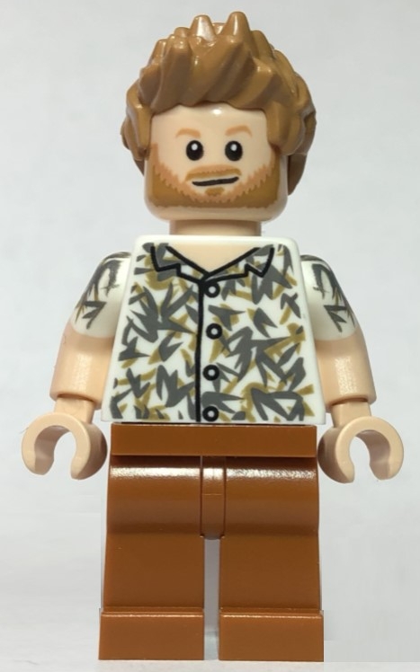 Torso Jacket, Floral Print over White Button Down Shirt Pattern / Bright Light Blue Arms with Floral Pattern / Reddish Brown Hands |