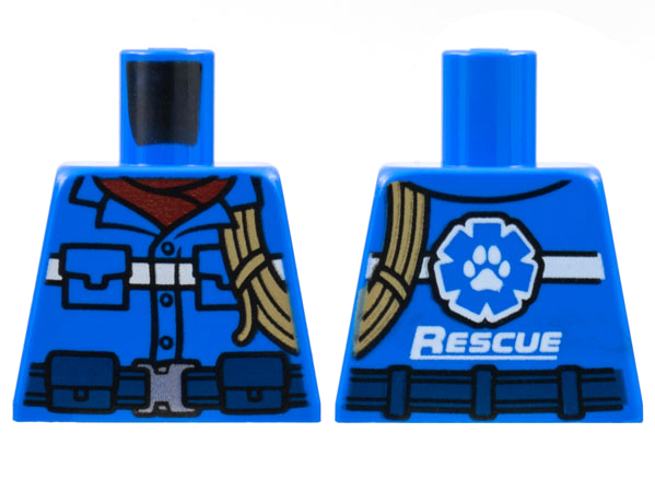 Torso Blue and Dark Blue Vest with Pockets and White Stripe over Shirt with Collar, Undershirt, Paw Print Logo and 'RESCUE' on Back Pattern / Tan Arms / Yellow Hands |