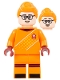 Minifigure, Head Dual Sided Black Eyebrows, Cheek Lines, Chin Dimple, Orange Goggles, Grin / Frown Pattern |
