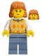 Minifigure, Head, Modified Giant Female Black Eyebrows and Hair with Braids, Dark Pink Circles on Cheeks and Lips, Grin Pattern |