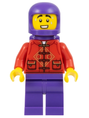 Minifigure, Head, Modified Giant Black Eyebrows and Hair Tuft, Dark Pink Circles on Cheeks, Open Mouth Smile with Red Tongue Pattern |
