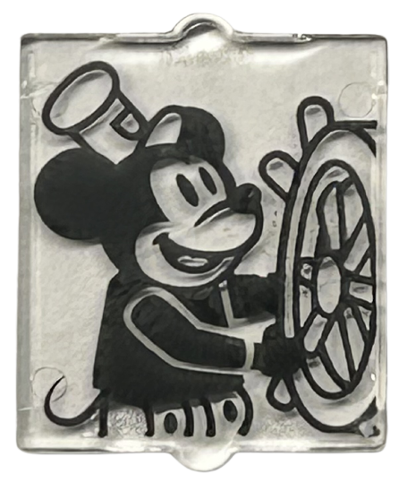 Glass for Window 1 x 2 x 2 Flat Front with Black Mickey Mouse and Ship's Wheel Pattern |