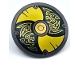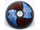Tile, Round 2 x 2 with Bottom Stud Holder with Dark Brown Border and Bars and Dark Red Dragon Pattern |