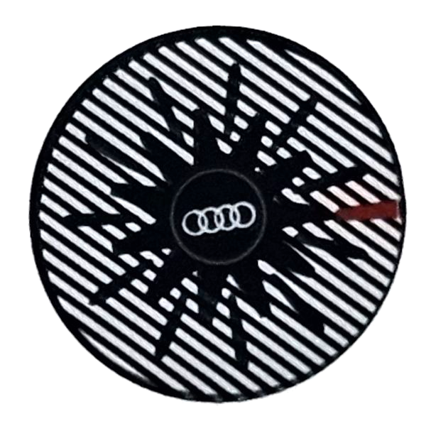 Wedge 4 x 4 x 2/3 Triple Curved with White Audi Logo on Dark Bluish Gray and Silver Stripes Pattern |
