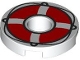 Tile, Round 2 x 2 with Hole with Red Life Preserver with Black Loops and String Pattern |