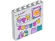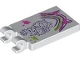 Tile, Modified 2 x 3 with 2 Open O Clips with Dark Purple Drawing of Gabby and Kittens, Dark Pink, Lavender and Lime Rainbow with Cat Ears Painting and Paint Splotches Pattern |