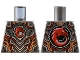 Minifigure, Shield Circular / Round Convex Face with Gold and Dark Brown Dragon Face, Red and Coral Eyes, Mouth, and Symbols Pattern |
