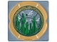 Plastic Round Leaded Window with Gold Frame, Green and Dark Green Emerald City Skyline Pattern |