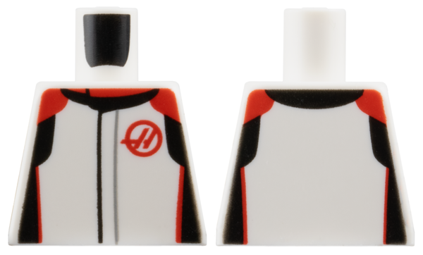 Torso Racing Suit with Black and Red Collar, Shoulders, Sides and Haas Formula 1 Logo Stylized Capital Letter H Pattern / White Arms / Black Hands |