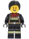 Fire - Female, Black Jacket and Legs with Reflective Stripes and Red Collar, Black Hair Braided with Knot Bun, Freckles |