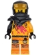 Plastic Part for Set 71843 - Pauldron for Mech, Gold Stripes and Ninjago Logogram 'RJ' in Circle on Red Background Pattern |