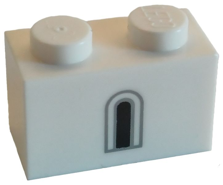 Brick 1 x 2 with Black and Light Bluish Gray Castle Window Pattern |