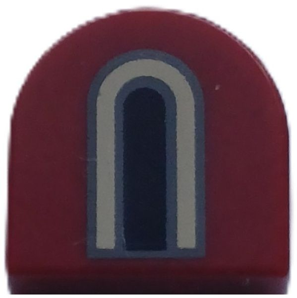 Tile, Round 1 x 1 Half Circle Extended with 2 Black and Light Bluish Gray Castle Windows Pattern |