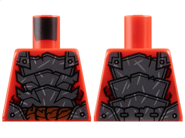 Torso Dark Silver Segmented Armor with Sharp Plates, Rivets and Silver Scratches over Dark Red Scales, Reddish Brown Thick Rope Belt Pattern / Red Arms / Black Hands |